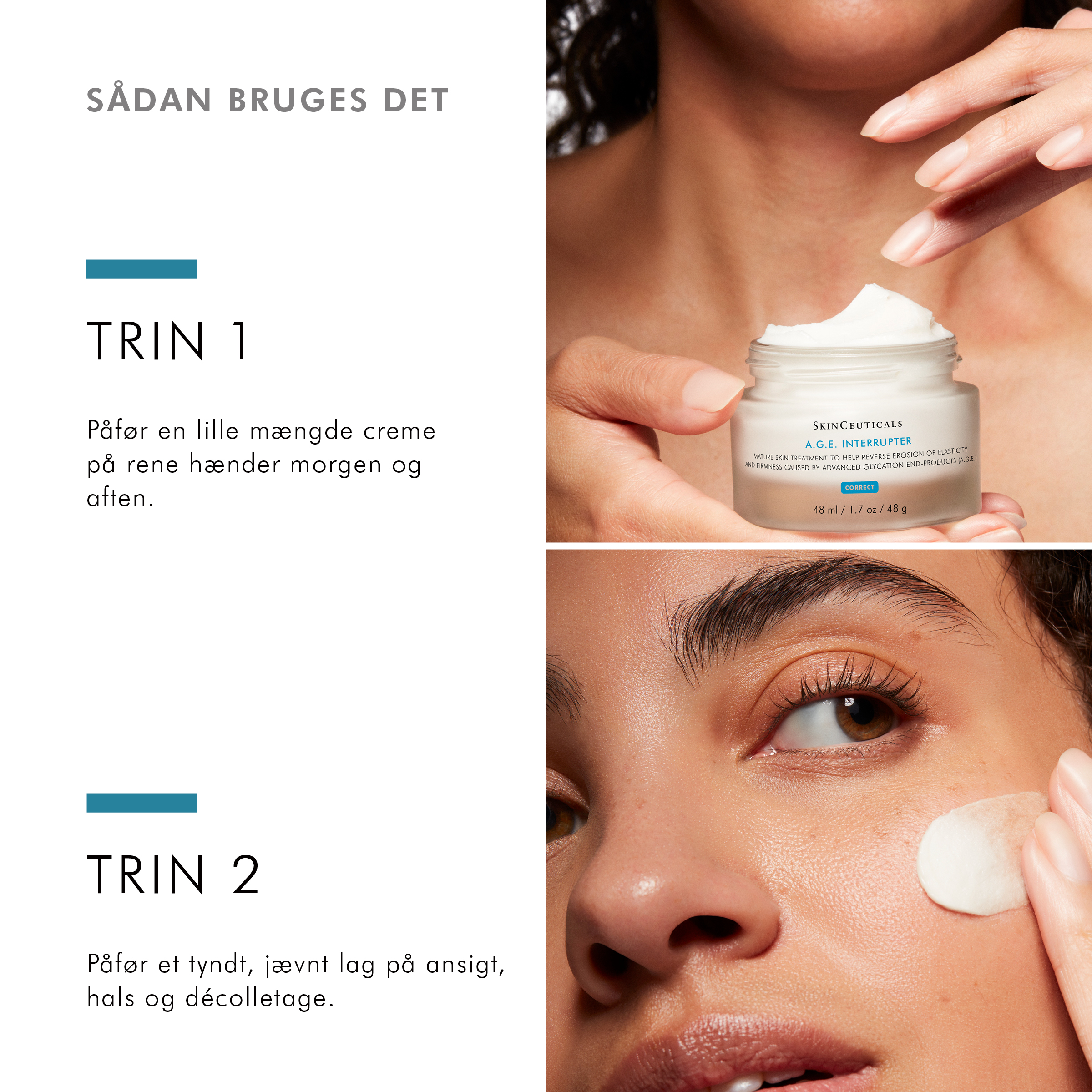 A.G.E. Interrupter Advanced er en multikorrigerende creme, der klinisk har vist sig at hjælpe med at korrigere synlige tegn på aldring af huden i forbindelse med kollagentab og den flerfasede glycationsproces, såsom rynker, tab af fasthed samt mathed. Den kraftfulde formel, der leveres gennem en tæt konsistens, er fyldt med mere effektive Proxylane og flavaniod niveauer fra vild frugt i forhold til forgængeren, A.G.E. Interrupter, samt ekstra lindrende ingredienser som glycyrrhetinsyre, der giver synlige resultater og overlegen anti-glycation-effekt. A.G.E. Interrupter Advanced giver langvarig fugt, er skånsom mod huden og velegnet til alle hudtyper.